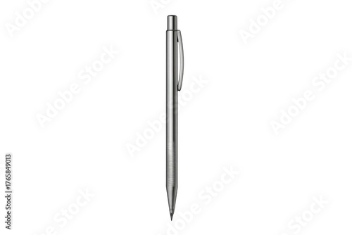 Silver metal ballpoint pen writing instrument on transparent background
