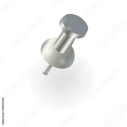 Silver Metal Push Pin, Office Supply, Stationery, Sharp Point, Attachment, White Background, 3D illustration