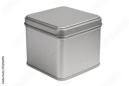 Silver metal tin box packaging on transparent background