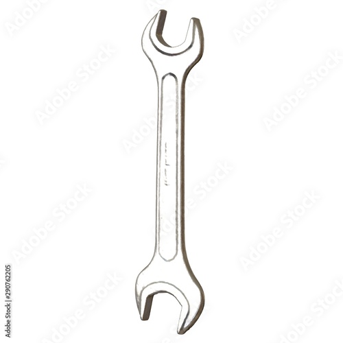 Silver two way metal wrench isolated on white background. 3D rendering of excellent quality in high resolution