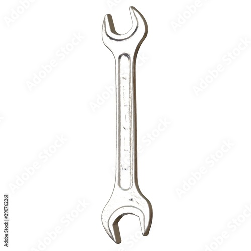 Silver two way metal wrench isolated on white background. 3D rendering of excellent quality in high resolution