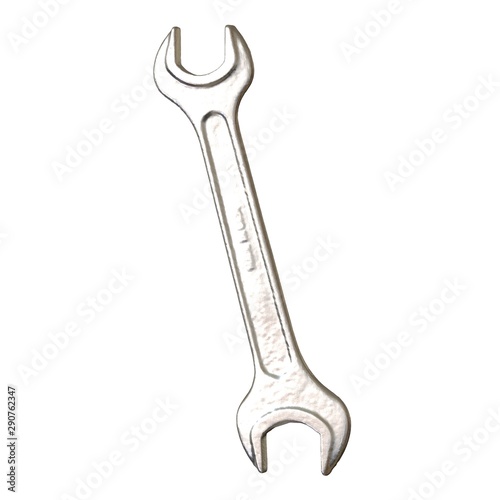 Silver two way metal wrench isolated on white background. 3D rendering of excellent quality in high resolution