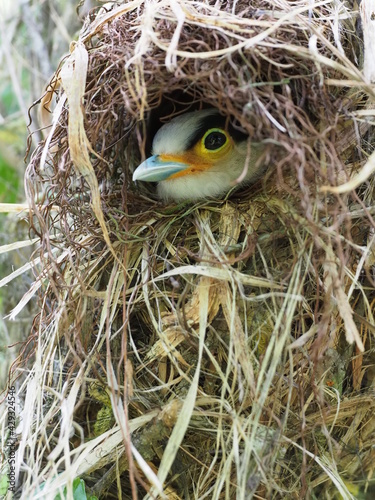 Silver-breasted Broadbill nest at the end of the twigs. until April is the season of this nesting bird