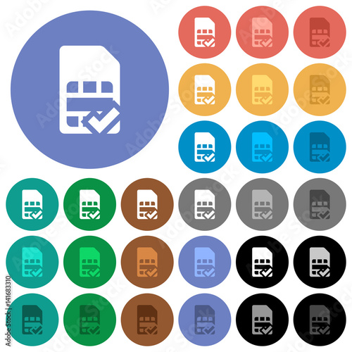 SIM card accepted round flat multi colored icons