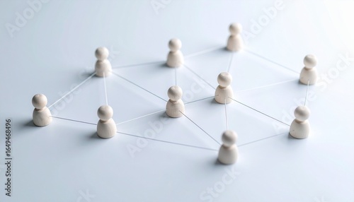 Simple background, connection network with doll icons connected to each other with thin lines