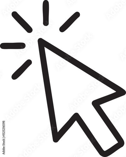 Simple Black and White Click Cursor Icon with Rays for Web Design and UI minimalist