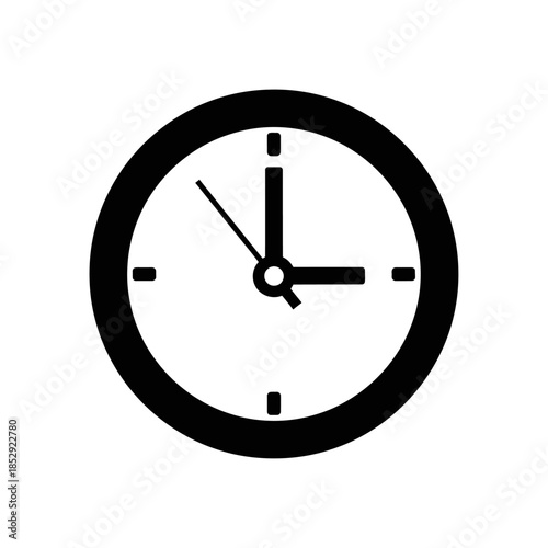 Simple black and white clock icon with hour, minute, and second hands indicating time.