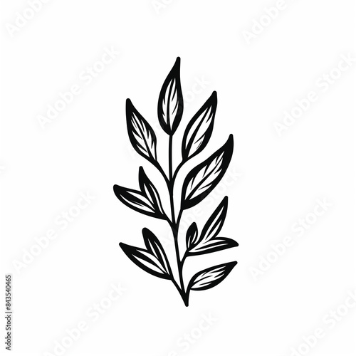 Simple black and white hand-drawn branch with leaves.