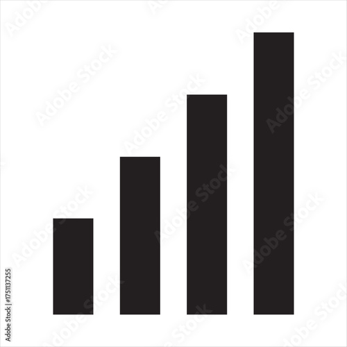 Simple black bar graph showing increasing trend and growth with four ascending bars on white background