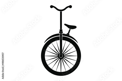 Simple Black OneWheeled Unicycle with Handlebars and Seat Graphic Illustration Image