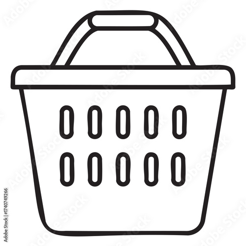 Simple black outline icon of a shopping basket with a sturdy handle, showcasing a minimalistic design for consumer and retail concepts.