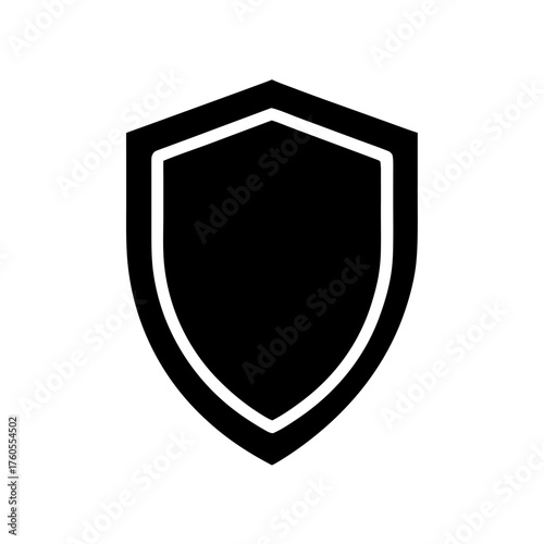 Simple black shield with white outline illustration on transparent background