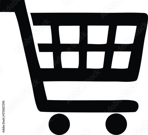 Simple black shopping cart icon representing online retail commerce and e-commerce storefronts for business and shopping needs