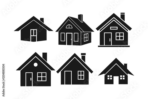 Simple Black Silhouette Houses Icon Set for Design