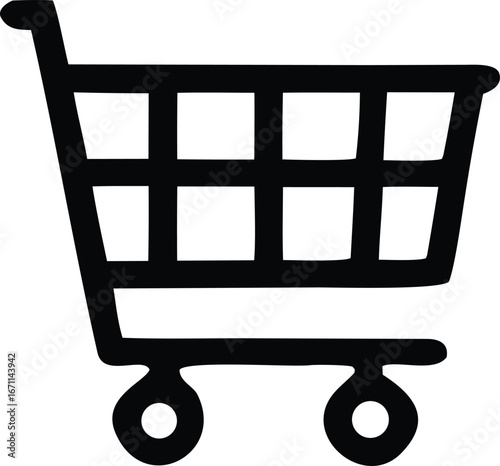 Simple black silhouette of a shopping cart icon representing commerce and retail online shopping and e-commerce