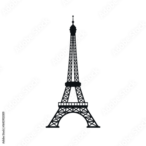 Simple black silhouette of the Eiffel Tower on a white background, emphasizing its iconic shape.