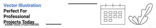 Simple calendar design alongside decorative leaf element emphasizing time management and eco-friendly concepts. Ideal for productivity, scheduling, project management, time tracking, organization