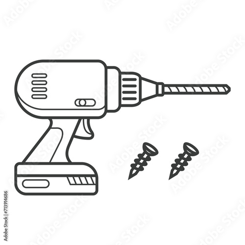 Simple cartoon carpentry and construction tools for home equipment and maintenance outline vector design art