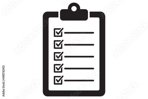 Simple checklist icon on clipboard silhouette vector illustration