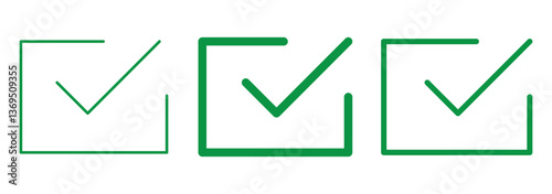Simple checkmark in a box set with different line width. Correct, approved symbol. Vector icons in flat style