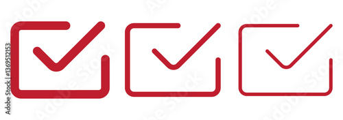 Simple checkmark in a box set with different line width. Correct, approved symbol. Vector icons in flat style