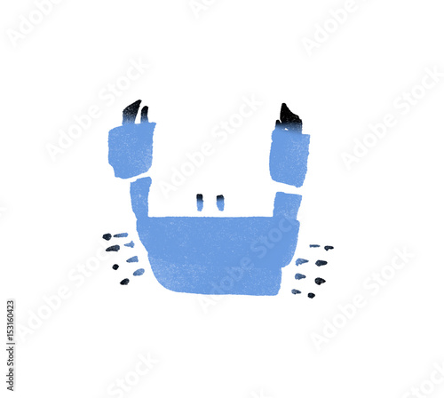 Simple childish blue crab in sumi-e technique isolated on white background.