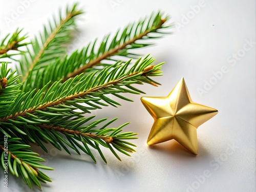 Simple Christmas: a golden star and pine branch against a pure white backdrop.