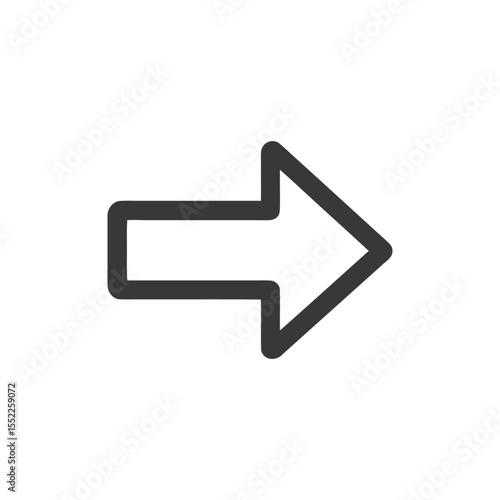 Simple Dark Arrow Pointing Right on White Background, Minimalist Design.