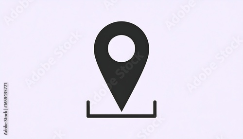 Simple dark grey map pin icon on light purple background, square base