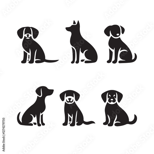 simple Dogs set vector silhouette style with white background