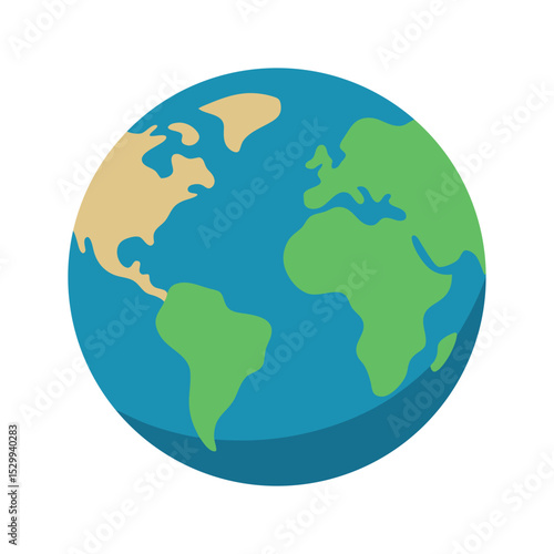 Simple earth illustration representing continents and oceans on a blue and green globe