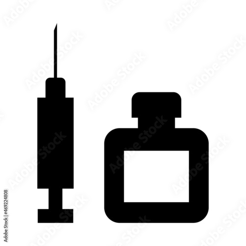 Simple flat black and white medical waste icon. Vector silhouette of a medicine vial and a syringe