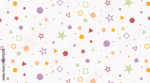 Simple Geometric Seamless Pattern, Shapes, Confetti, Minimalist, Design, Colorful, Cute, Vector Illustration
