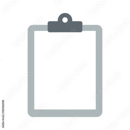 Simple gray clipboard icon with blank paper sheet, isolated on white