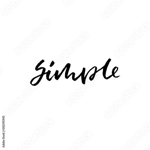 Simple. Hand drawn modern brush lettering. Typography banner. Ink vector illustration.