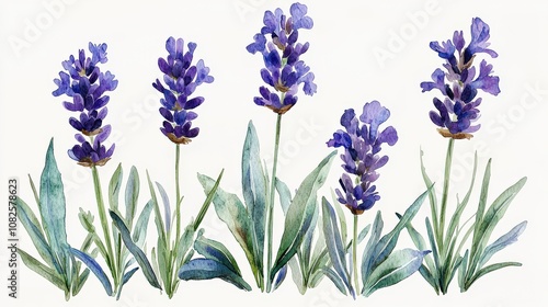 Simple lavender flower clipart with a single stem and soft purple blooms, on a white background. Gentle and calming.