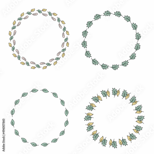 Simple leaves frames season collection isolated on white background. Perfect for invitations, cards and print. Floral vector illustration for decor and design.
