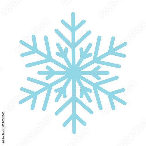 Simple light blue snowflake symbol in soft flat style on white background.