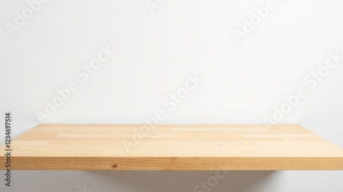 Simple Light Wooden Shelf Against a Blank Wall Background for Product Placement or Mockups