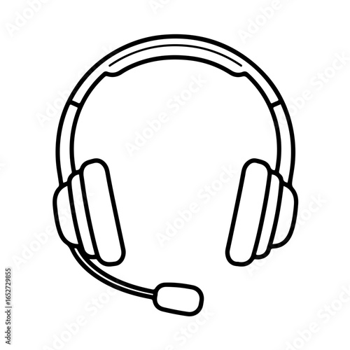 Simple Line Art Headset with Microphone for Communication and Support