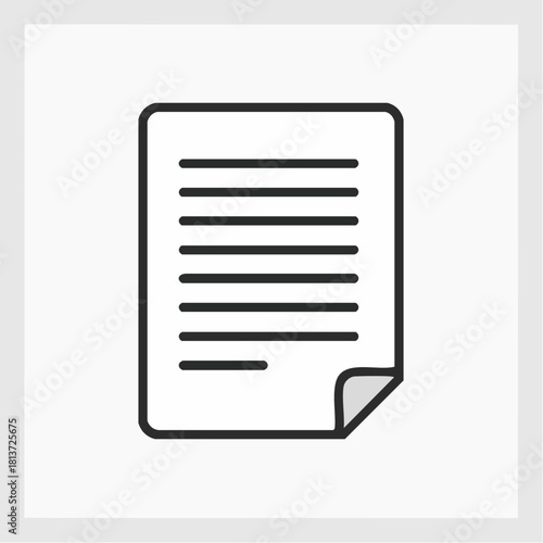Simple Line Art Icon of a Document with Text and a Curved Corner on White Background paper lines
