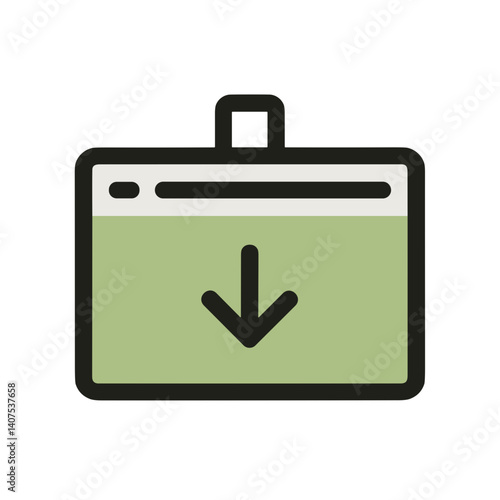 Simple line download interface icon in green background