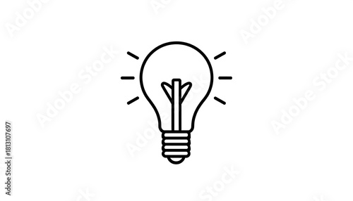 Simple line drawing of a glowing lightbulb symbolizes innovation and inspiration.