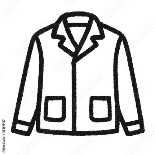 Simple line drawing of a jacket with pockets and collar