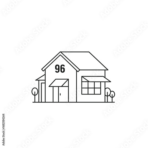 Simple Line Drawing of a Modern House with Number 96