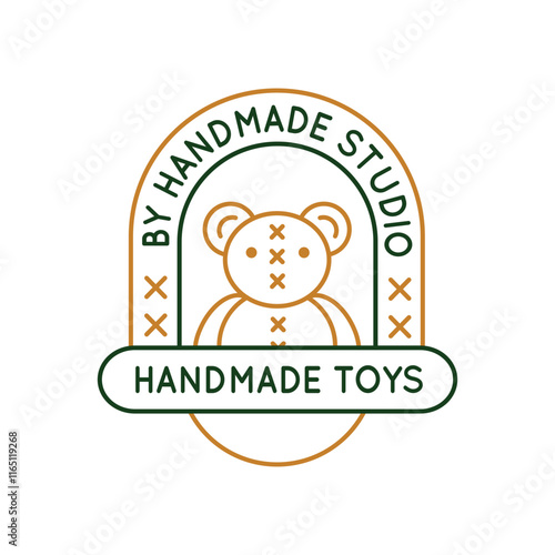 Simple Logo with Handmade toys by handmade studio icon. Simple Logo with Bear icon representing a plush toy for children-themed social media, app, and web design. Vector illustration