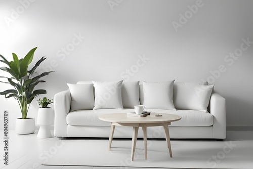 Simple neat interior. Simple sofa and table, ai, generative, 생성형, 심플한 인테리어