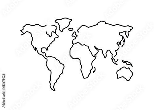Simple outline world map graphic with black stroke for global themes and cartography projects