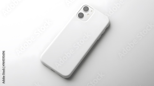 Simple Phone Case: A plain, white phone case with a minimalist design, lying flat on a white background, with crisp shadows for definition.