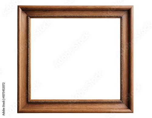 Simple plain wooden frame isolated on white transparent background for mockup purposes
